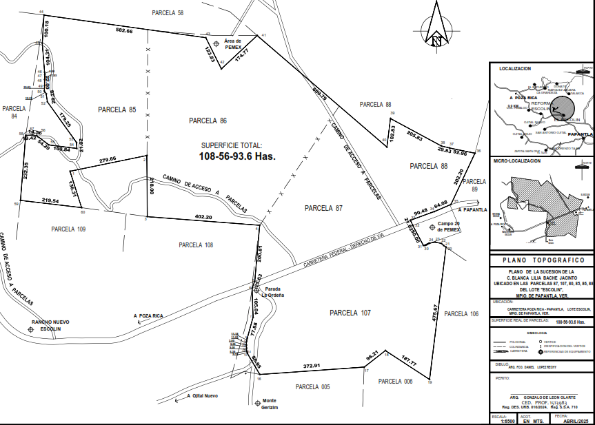Ubicación: Lote "Escolin", Municipio de Papantla, Veracruz, sobre la Carretera Federal Poza Rica - Papantla.